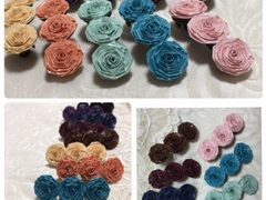 外径約3cmの台座に2.3~2.5cm位のバラの大きさに仕上げています。 もう少し色のバリエーションを増やそうとは思っているのですが、今回は5種類です。
