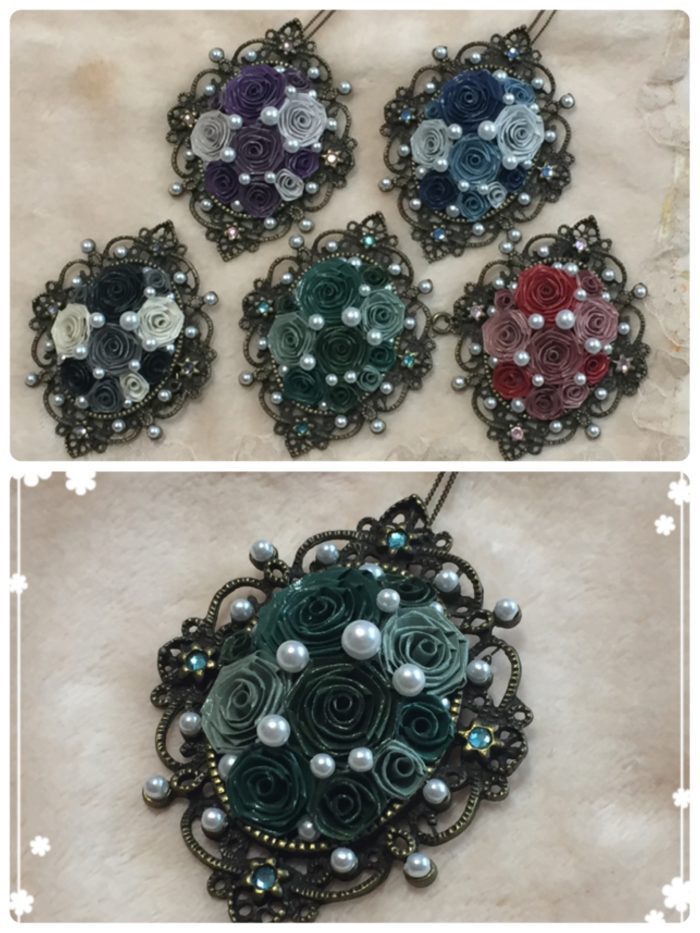 外径約3cmの台座に2.3~2.5cm位のバラの大きさに仕上げています。 もう少し色のバリエーションを増やそうとは思っているのですが、今回は5種類です。